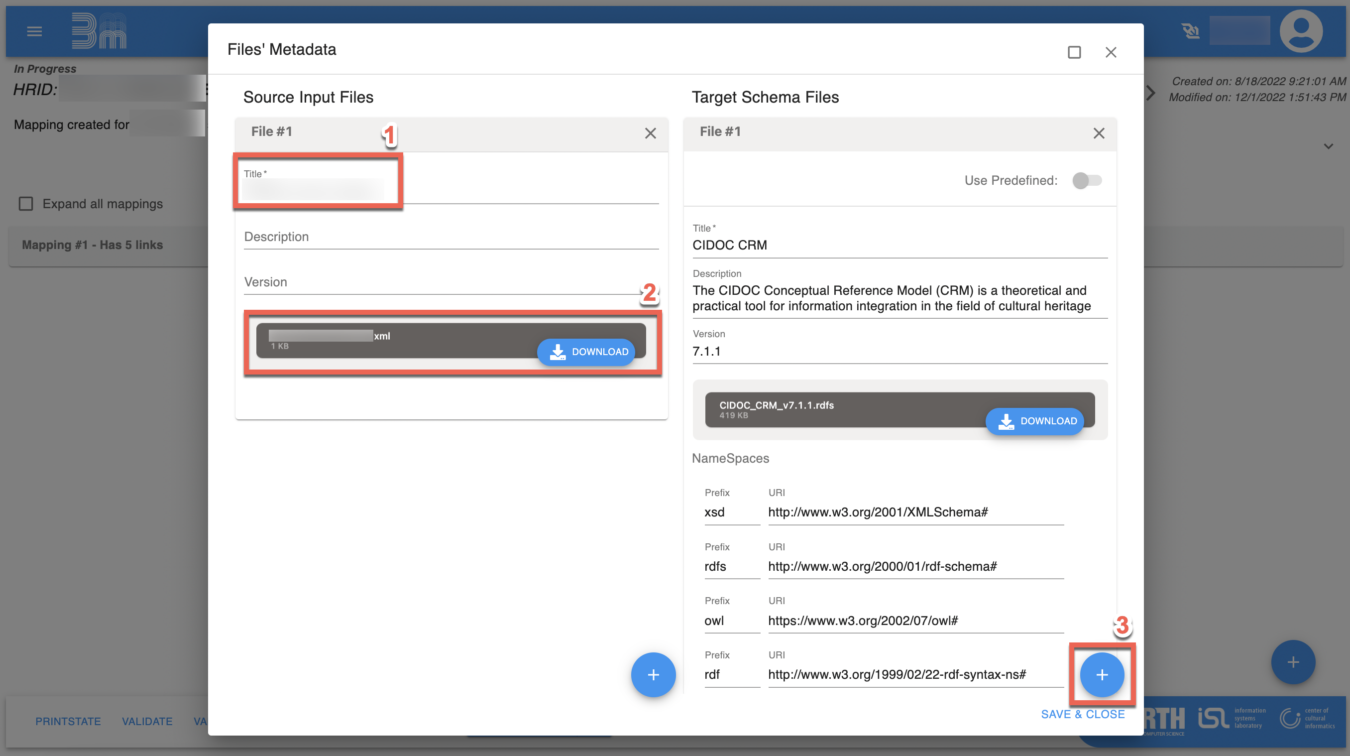 - Add and remove Resource Description Framework Schema (RDFS) files for your chosen target schemas (ontologies)