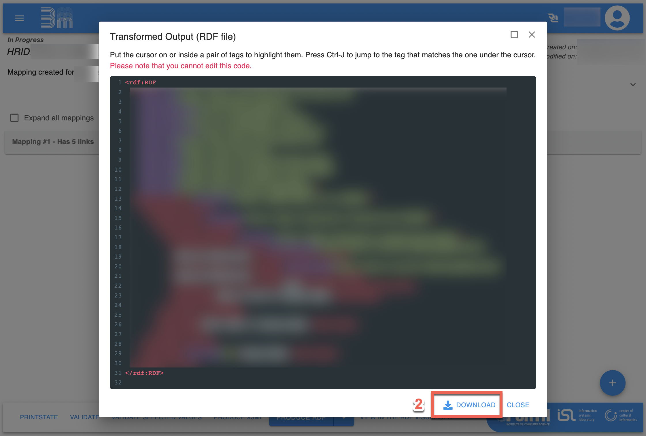 - Download the output in your chosen format (RDF/XML, TTL, N-Triples, TriG)